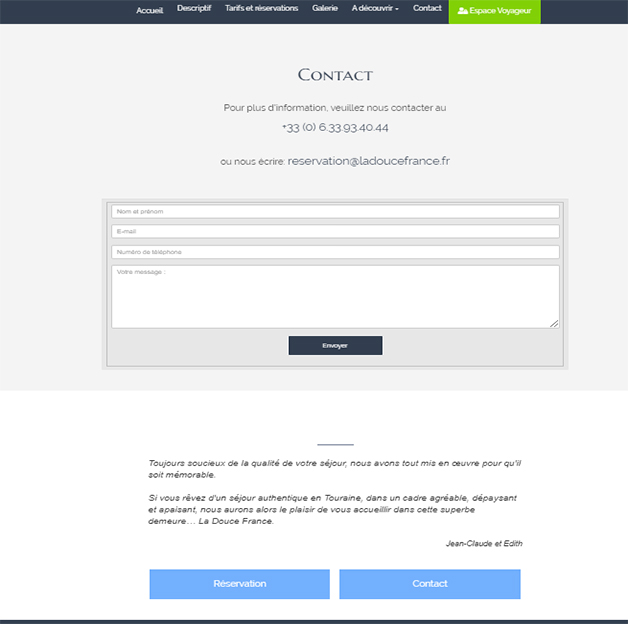 Suite à un appel d’offre sur Codeur.com, Ladoucefrance a eu pleinement confiance en Tinitz qui a su mettre en avant la beauté de ce lieu en réalisant un logo ainsi q'une plateforme web de présentation et de réservation en ligne synchronisée avec son calendrier de réservation Airbnb, Tripadvisor.